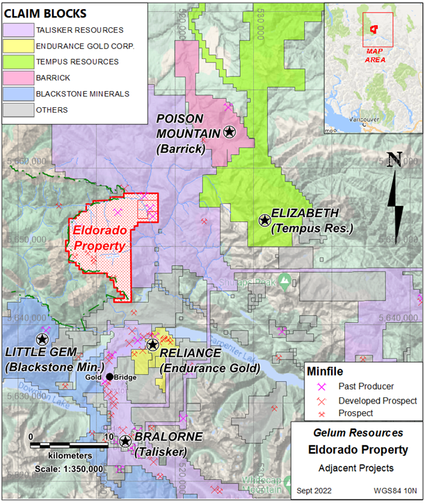 Gelum Resources is a Company led by seasoned management and advisors in the mining and financial sectors. The Company currently has two objectives under management. The first is to define a multi-million-ounce economic gold deposit on the 9028-hectare Eldorado Gold Project, located within the Bralorne-Bridge River gold district, only 190 kilometres north of Vancouver and 74 km northwest of the town of Lillooet, B.C. The Bralorne mines historically exploited the largest, highest-grade, longest-producing lode-gold deposit in B.C. Management is proud to have developed an excellent working relationship with the Bridge River Indian Band (Xwísten) the project is within the traditional territory within the St’at’imc territory (Traditional Territory) in which Xwísten and its members assert, hold and exercise constitutionally protected Aboriginal Title and Rights (“Indigenous Title and Rights”).