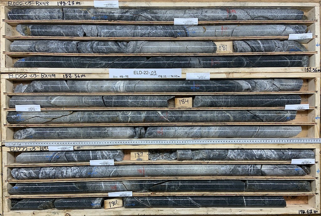 - Gelum completed three holes totaling 796m in the fall of 2022, and an additional six holes totalling 1340m in fall of 2023. Airborne (VTEM) and ground (3D IP) geophysics have outlined several promising drill targets.
